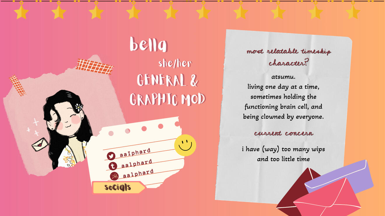 The event is currently in its Build Up phase, with summary submissions officially being due on August 15th.Anyone thirteen and above will be allowed to participate in the event.The event will allow NSFW content, but you must first confirm your age with a moderator if you wish to create or consume NSFW works during the event.There will be five key roles: Moderators, Writers, Artists, Beta Readers and Pinchers.The event will have two tiers: a Big Bang and a Mini Bang.Creation for the event will continue until December 31st, with the posting beginning on New Year's Day